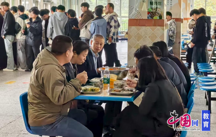 家长监视员们取学生配合用餐,会议由高应彬掌管。完成了初次陪餐监视工做。(文/图:乐山市惠德分析高级中学)