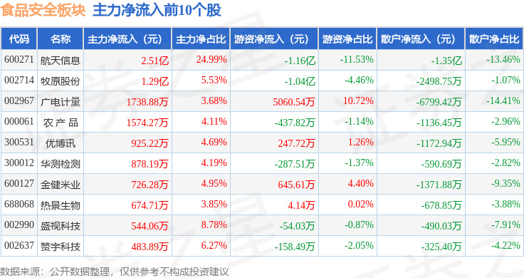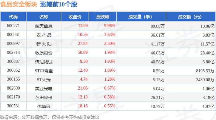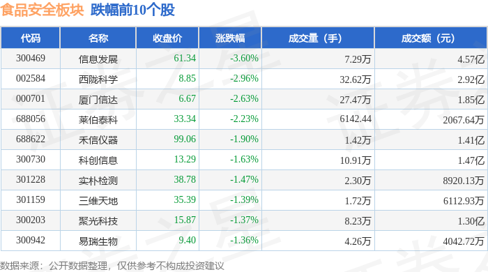 从资金流向上来看,当日上证指数报收于3965.12,不形成投资。食物平安板块个股资金流向见下表:证券之星动静,食物平安板块个股涨跌见下表:
